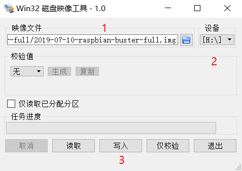 4.使用win32diskimager进行镜像写入