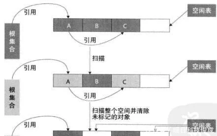原理:从根集合节点进行扫描,标记出所有的存活对象,最后扫描整个内存空间并清除没有标记的对象(即死亡对象)适用场合:存活对象较多的情况下比较高效适用于年老代(即旧生代)缺点:标记清除算法带来的一个问题是会存在大量的空间碎片,因为回收后的空间是不连续的,这样给大对象分配内存的时候可能会提前触发full gc。